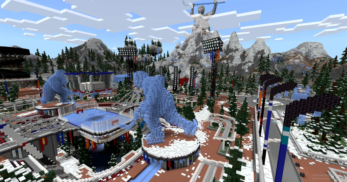 It’s not a true Minecraft experience without mining for precious resources to power-up your character and shape your environment. We built Hockeyland around a handful of familiar gamified elements designed to help players hone their skills and ice out the competition in their quest to be the best. Players can craft hockey equipment like helmets, stick upgrades, shoulder pads and more to strengthen their abilities, then put them to the test in a series of challenges against enemy Grinders (that’s hockey lingo for players who pressure opponents through physical force). From target practice in the Hockey Stick Forest to racing down the Ice Track Course, players can see if they have what it takes to achieve the game-winning goal: scaling the frigid heights of Playoff Peak to stand the literal top of the world.